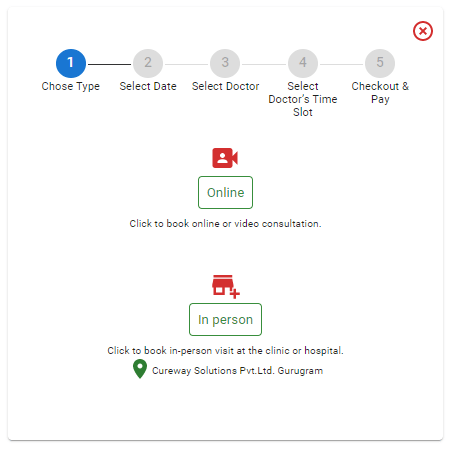 to start booking doctor’s appointment. Once you click on “Book Appointment” add button, it will open below interface, which will guide you through the process of booking the appointment.