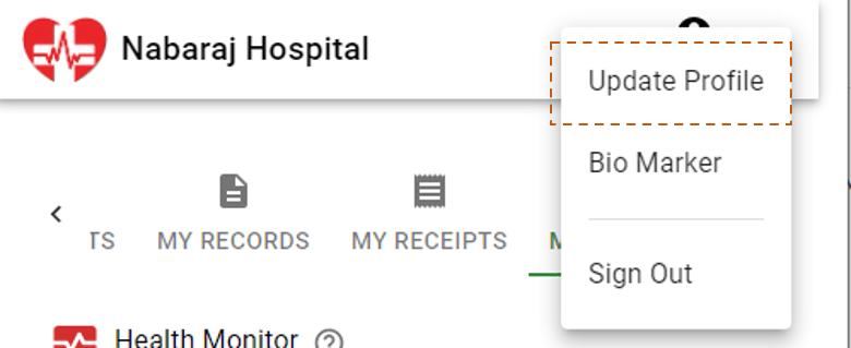 “My Monitor” section/tab helps you to manage your Bio-Markers or critical body parameters like Heart Rate, Body Temperature, Blood Pressure, SPO2 etc. This helps doctor see the trend of your Bio Markers and understand your condition better.