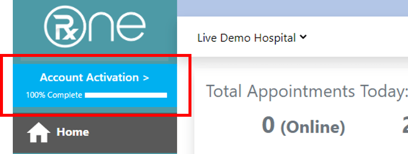 Account can be activated once KYC is reviewed and approved by RxOne Team. A Facility Owner or Staff can complete the KYC form and submit for KYC Review. Once submitted Account Activation bar will show the progress of Account Activation. Once KYC Review is all completed, “Account Activation” will show full bar indicating KYC completion and Account Activation.